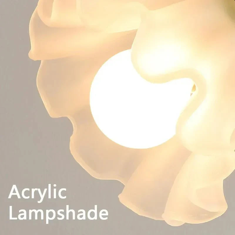 The elegant flower-shaped shade diffuses light softly, creating an inviting and cosy atmosphere ideal for bedrooms or relaxed living spaces. Supported by a refined metal base, the lamp balances decorative appeal with everyday functionality, offering both visual interest and practical illumination.